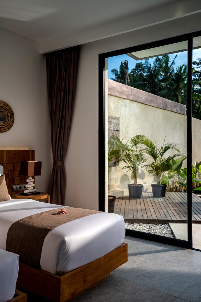 The heart of this property is the amazing pool, which is located in the middle of the buildings and offers an amazing view on rice fields and palm trees. A sunken lounge area in the pool gives the little extra and is the perfect hang out-spot for the whole group.